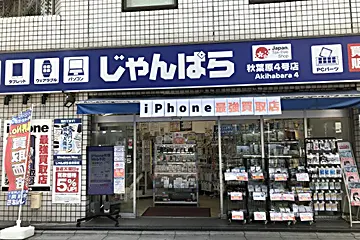 じゃんぱら秋葉原4号店とは・・・ ☆秋葉原駅昭和通り口から徒歩1分!の超好立地☆ 会社帰りや電車の乗り継ぎの際でも気軽に立ち寄れるお店 ・駅から遠いと面倒な買取も是非当店をご利用下さい! ・販売と買取の入り口が異なりますのでご注意ください! iPhone、iPad、スマートフォン、ノートパソコン、MacBook、PCパーツ等の販売と高価買取やってます! ・残債ありの携帯電話でも大丈夫!分割買取サービス! ・液晶割れのiPhone、iPadの買取も是非ご相談ください♪ おすすめ商品を取り揃えて、スタッフ一同お客様のご来店お待ちしています! ※デジタル一眼ボディ単品/レンズ単品の買取ご利用の場合は、 近隣のD-Style秋葉原をご利用くださいませ。 ----------------------------------------------------------------------------- 1万円以上の買取をご利用のお客様には、下記の指定駐車場の駐車券をご提示いただくことで、 お支払い時に120分の駐車サービス券を発行しています。 対象駐車場:UDXパーキング、秋葉原ダイビル駐車場、富士ソフトビル駐車場 詳しくは以下のURLをご参照ください。 https://www.janpara.co.jp/contents/parking/#akihabara |